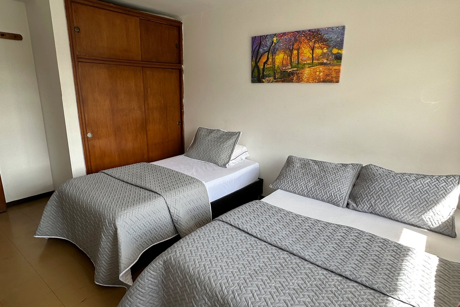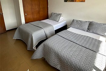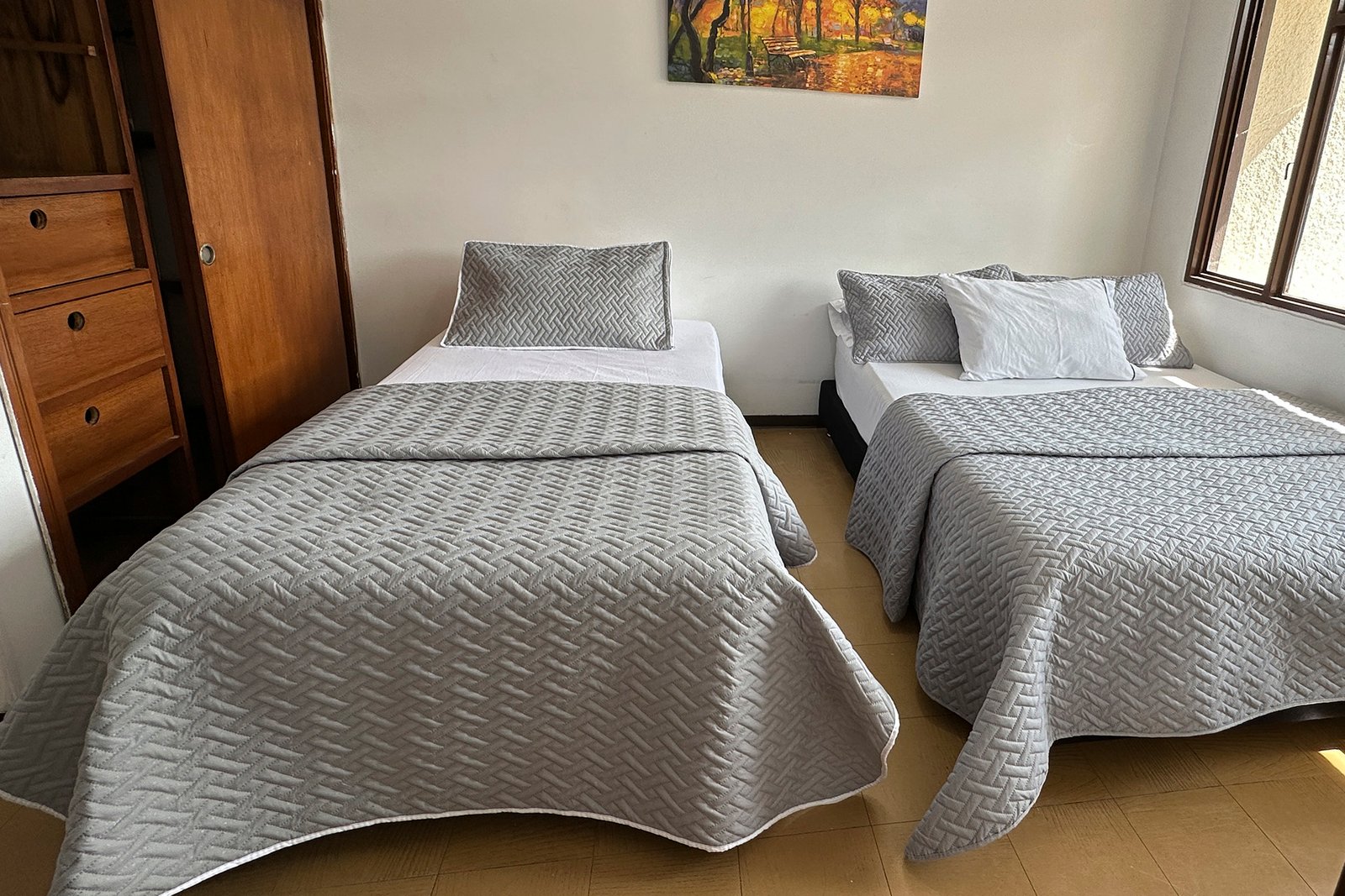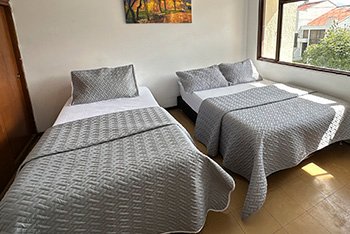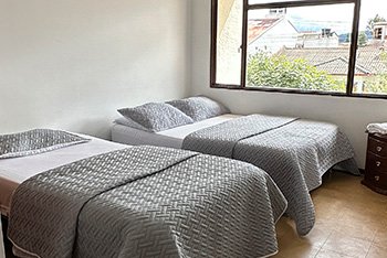 Habitación familiar, acomodación triple, cómoda, acogedora, baño privado, buena iluminación, ventilación, cálida y confortable. Vista exterior.